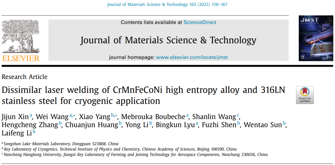 松山湖材料实验室JMST:优质焊接性能助力高熵合金低温应用