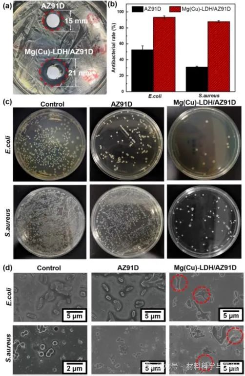 镁合金的密度和弹性模量与人骨接近,具有作为骨科植入物的潜力。然而,镁合金极易发生腐蚀,伴随着植入后细菌感染,常常导致种植失败。因此有必要开发一种具有优异耐蚀性,同时兼具抗菌和促骨再生的新型材料。层状双氢氧化物(LDH)是指两种或两种以上金属元素氢氧化物嵌层组装水滑石层状结构,因其优越的离子交换功能可改善耐蚀性而备受关注。