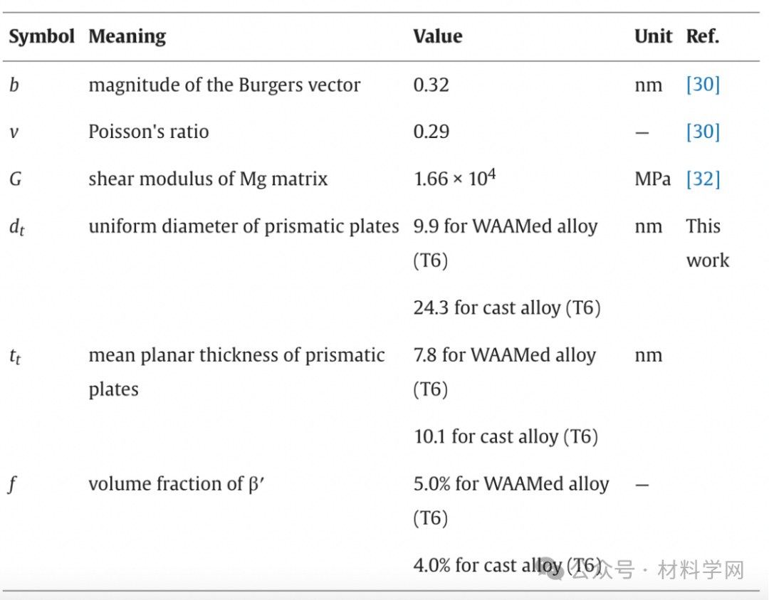 表3。在Orowan方程中使用的参数的含义和值