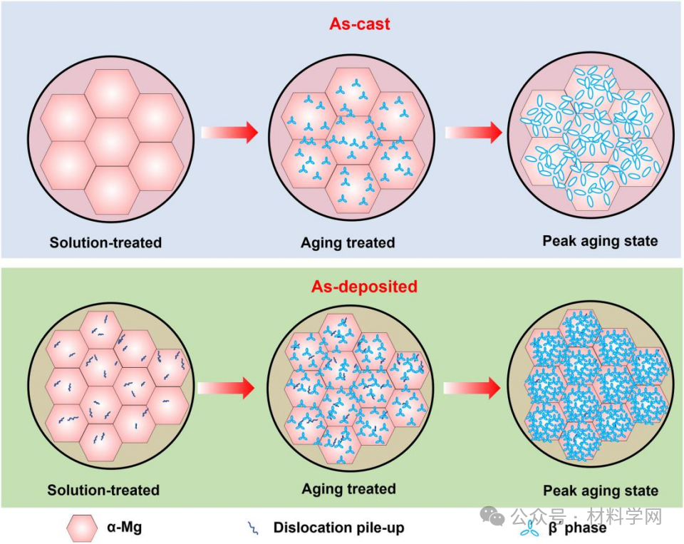 图7所示。铸造态和沉积态GW93K合金的析出行为简图