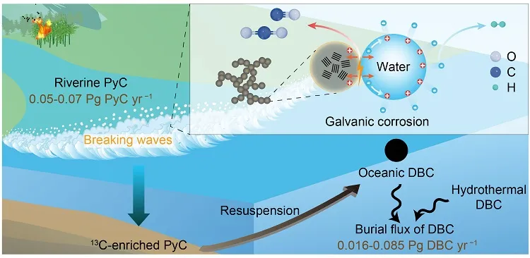 生物质(秸秆、草原、森林等)通过不完全燃烧每年生成约2.6亿吨火成碳(Pyrogenic carbon)。其可以通过河流和大气运输进入海洋,其中的惰性火成碳作为海洋中黑碳的来源;这种碳在环境中拥有超长的停留时间,具有巨大的长期碳汇潜力,是影响碳封存和气候变化的重要因素。