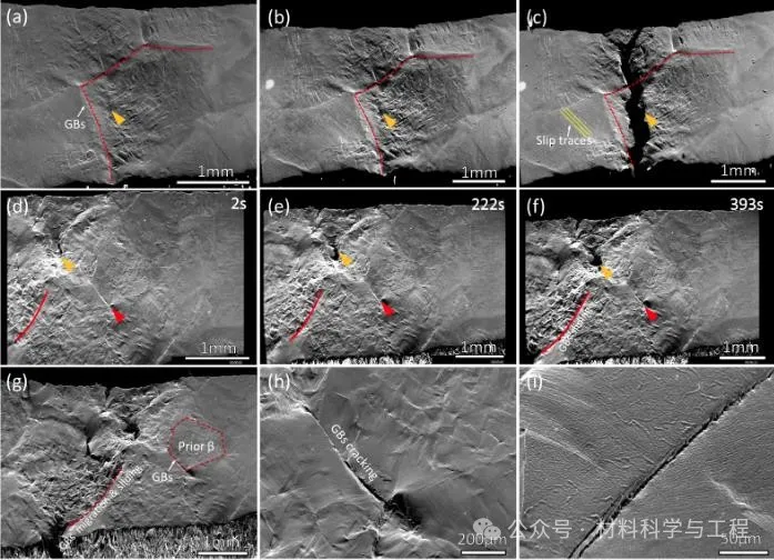 图5 魏氏体组织高温原位拉伸,晶界迁移、滑移演变过程