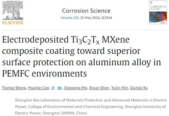 二维Ti3C2Tx MXene由于可调控的结构和表面化学特性、优异的阻隔性能、高径厚比、超薄厚度、化学稳定性、机械性能和层间易于剪切变形能力,具有防腐耐磨性能。MXene复合涂层可用于金属表面防护。质子交换膜燃料电池(PEMFC)金属双极板在酸性条件下的腐蚀问题,制约电池使用效率。常用的金属、陶瓷、碳基、聚合物涂层,依然存在纳米填料难以均匀分散、制备流程复杂、涂层制备速率低、环境不友好和成本高等问题。同时,涂层厚度影响双极板使用性能,而双极板表面防护用超薄复合涂层的构建仍存在挑战。因此,基于MXene类金属导电性、强阻隔性及低摩擦系数,可通过电沉积构建超薄MXene复合防护涂层,有望解决以上问题。