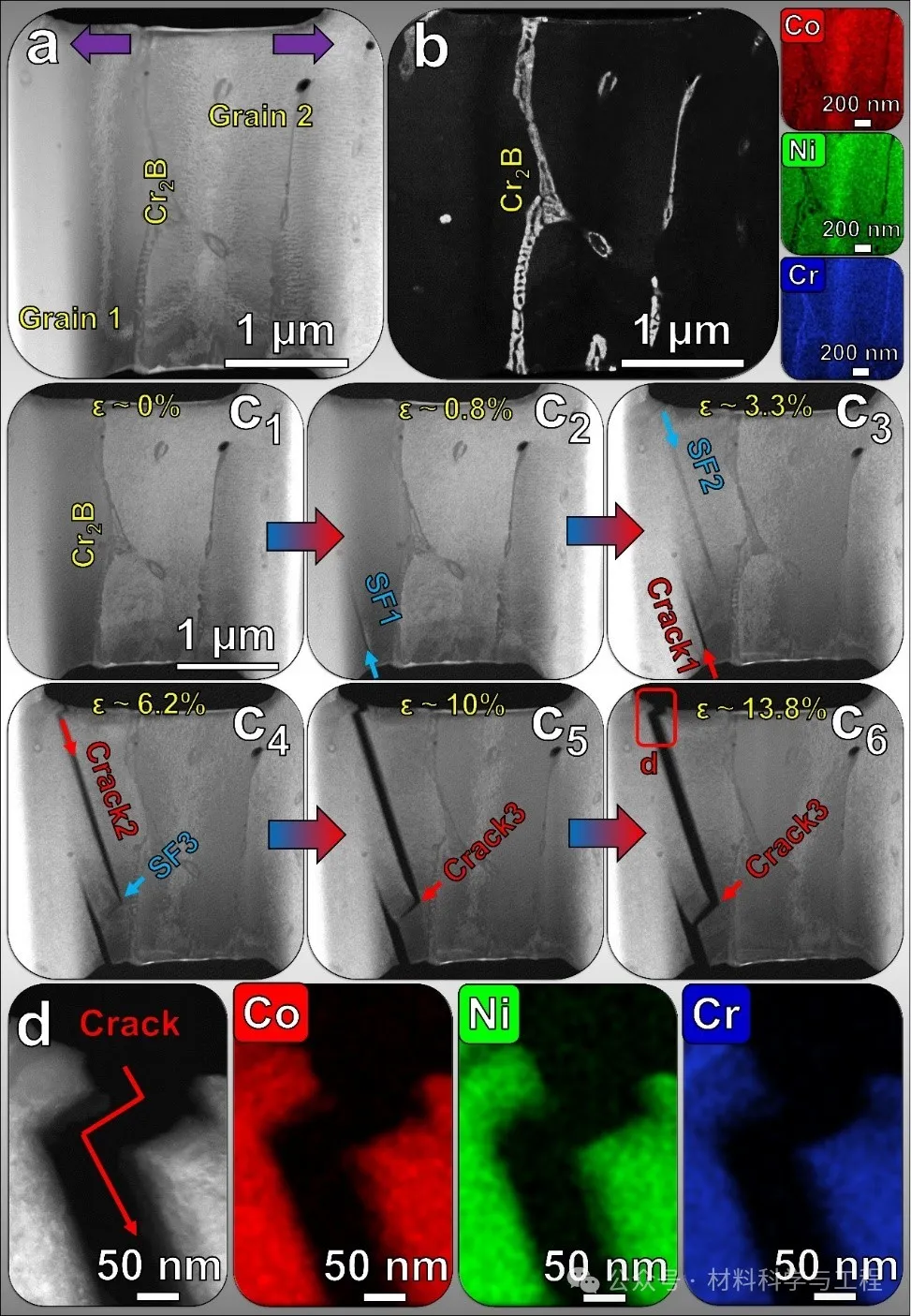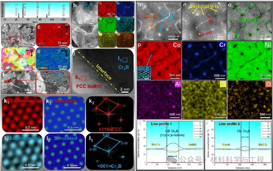 图2:CoCrNi/Cr2B 复合材料的变形前的显微组织表征。