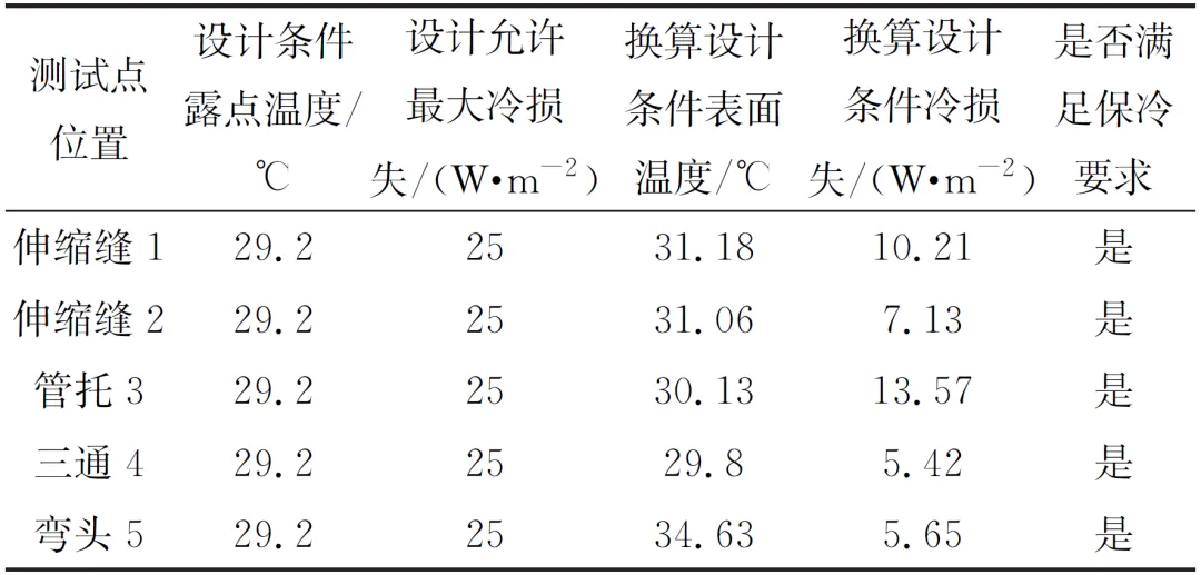 2 修复前对保冷系统进行测试,管道外表面温度较低,换算成设计条件的表面温度后,不满足防结霜要求,冷损失严重,远超过设计允许最大冷损失要求,修复后满足防结霜要求,不存在漏冷现象。