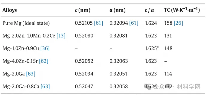 表3。理想Mg晶体和某些Mg合金的晶格常数及其TC(*表示从相应文献中的图像获得的数据)。