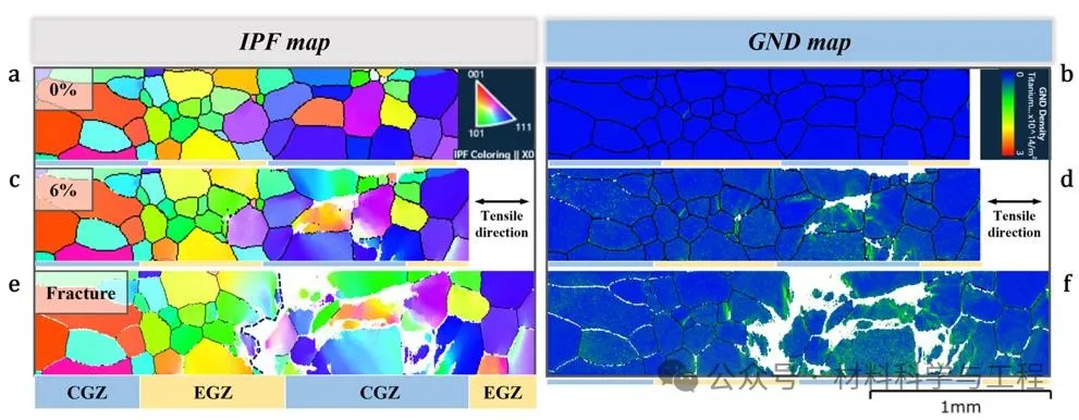 图5 原位EBSD表征揭示“等轴晶-柱状晶”梯度晶粒组织的变形-断裂机制