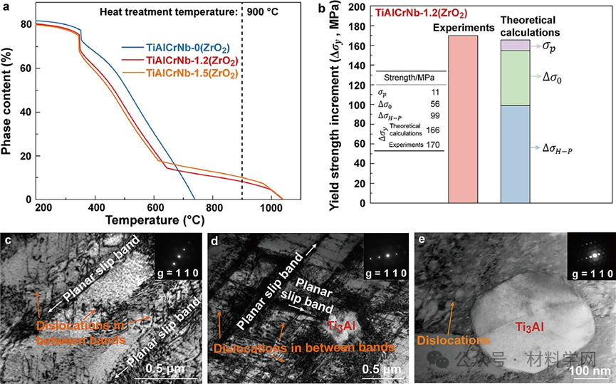 图5. TiAlCrNb-0/1.2(ZrO2)中熵合金的相变行为及其强韧化机制