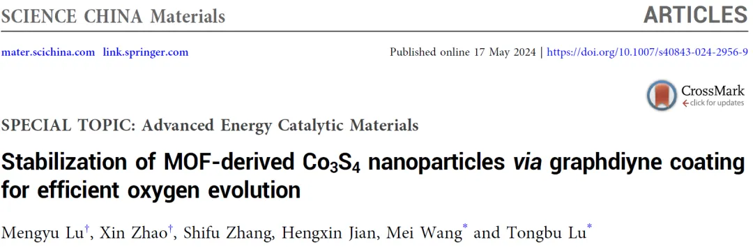 天津理工大学鲁统部&王梅等:石墨炔涂层稳定MOF衍生物Co3S4纳米材料用于高效电催化析氧反应