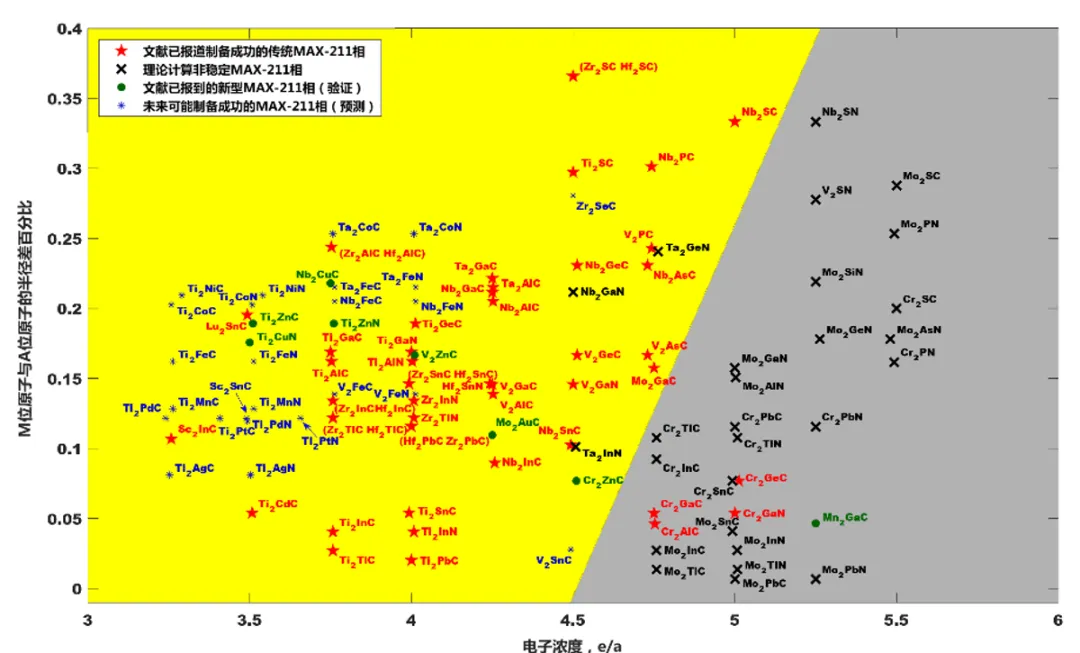 MAX相(化学式Mn+1AXn)是一类兼具金属与陶瓷特性的三元层状材料,具有丰富的元素组成、多样的化学成键和独特的晶体结构,在高温承载结构、电力传输机构、摩擦磨损器件、核用包壳材料等应用领域受到广泛关注。然而,其庞大的化学组合空间让实验探索犹如“大海捞针”。传统依赖实验试错的研发模式效率低、成本高,制约了新型MAX相材料的发现。 科学研究范式的不断演进,折射出人类对自然规律理解认知的加深(图1):从早期的实验试错,到理论模型的构建,再到计算科学的兴起,每一次范式的转变都极大提升了研究效率。当前,科学研究正迈入新的阶段,大量从宏观到微观、自然观测到实验表征、计算分析到模拟仿真所产生的科学数据催生了“数据驱动”研究策略的兴起。科学家们不仅通过对广泛数据实时、动态的监测与分析来解决难以驾驭或不可触及的科学问题,更是把数据作为科学研究的对象和工具,基于数据来思考、设计和实施科学研究。数据不仅是科学研究的结果,更是变成科学研究的基础;人们不仅关心数据的描述、组织、保存、访问、复用,更关心如何利用其内在的交互性、开放性,并实现数据的可知识对象化、可计算化,进而构建起基于数据的研究与创新模式。 图1科学研究范式的不断演进 中国科学院宁波材料技术与工程研究所先进核能材料实验室长期从事结构与功能一体化的新型MAX相材料探索与创制,已在Science、Nature Materials、Proceedings of the National Academy of Sciences of the United States of America、Journal of the American Chemical Society、Advanced Materials 等高水平学术期刊发表论文100余篇,近年来,实验室积极推进数据科学方法赋能实验、计算、建模与仿真,打破传统以经验积累和循环试错为特征的“经验寻优”的研究方式,建立起集实验、理论、计算和数据于一体的“理性设计”研究模式,进而提升MAX相材料的研发效率,支持能源领域的可持续发展。 在前期工作中,实验室发展了基于数据驱动的结构映射方法,提出了影响MAX 相形成能力的两个关键设计变量(电子浓度因子 & 几何结构因子)并确定其表达形式,在此基础上构建了可用于MAX相材料可形成能力快速判断,进而指导高效开发新型MAX 相的二维结构映射图(Materialia 2020, 12, 100810; Ceram. Int. 2024, 50, 2855; AI Mater. 2025, 1, 0008)。借助初版结构映射图的辅助(Materialia 2020, 12, 100810,图2),实验室已成功实现了多种新型MAX相材料的开发,包括:Zr2SeC、Ta2CoC、Ta2FeC、Nb2FeC、Ti2FeN、Sc2SnC、V2SnC等(J. Eur. Ceram. Soc. 2021, 41, 4447; Appl. Phys. Rev. 2021, 8, 031418; Nano-Micro Lett. 2021, 13, 158; J. Inorg. Mater. 2021, 36, 773; Adv. Sci. 2023, 10, 2206877; J. Phys. Chem. Lett. 2023, 14, 481; Small 2024, 20, 2401022,图3)。新版结构映射图(Ceram. Int. 2024, 50, 2855,图4)综合考虑了MAX相材料共棱八面体的结构特征,通过更新几何结构因子的表达,并将多元MAX相材料纳入分析(Ceram. Int. 2024, 50, 2855,图5),将结构映射图的划分准确率由92.1%进一步提升至95.5%。 图2初版结构映射图(Materialia 2020, 12, 100810) 图3初版结构映射图所预测的新型MAX相被后续实验所验证 图4更新几何结构因子表达的新版结构映射图(Ceram. Int. 2024, 50, 2855) 图5新版结构映射图,并将多元MAX相材料纳入分析(Ceram. Int. 2024, 50, 2855) 近期,实验室在学术期刊 AI & Materials 上发表综述文章(AI Mater. 2025, 1, 0008),系统介绍了运用计算方法探索 MAX 相领域以发掘新型候选材料的历史脉络和最新进展,详细讨论了高通量第一性原理计算方法和结构映射策略在探索新型MAX相中所发挥的不同作用。文章指出,相比于第一性原理计算的解析方法,结构映射提供了对 MAX 相形成可能性的快速区分,进而为系统筛选潜在的 MAX 相提供了有用的初始指导原则,是解决MAX 相元素组合设计中阶乘复杂性问题的强大工具。 相关成果 AI & Materials Electronic structure and nuclear-environment applications of MAX phases: a theoretical perspective DOI: 10.55092/aimat20250008 项目支持 国家自然科学基金 U23A2093、22206193 浙江省“尖兵”“领雁”计划 2022C01236 宁波市“科创甬江2035”关键技术项目 2024Z284