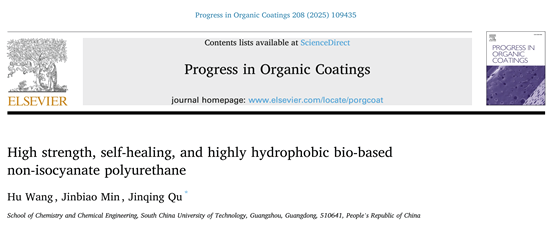 数据来源与出处 相关研究成果以“High strength, self-healing, and highly hydrophobic bio-based non-isocyanate polyurethane”为标题发表在《Progress in Organic Coatings》上。