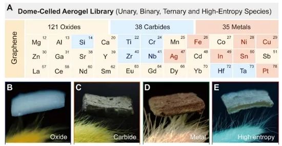 气凝胶,世界上最轻的材料之一,素有“凝固的烟”之称。难以想象这样轻柔至极的“身板”,有一天能为太空探测保驾护航。经过10余年的探索,浙江大学高分子学系高超教授团队成功制备出具有微穹顶结构的高弹气凝胶,其耐热能力突破了2000摄氏度(2273K)大关,在反复挤压下依然保持轻盈高弹、性能稳定。 多种类型的微穹顶气凝胶堆叠 这一突破,源于一种全新的气凝胶构筑方法——氧化石墨烯基二维通道受限发泡法。这是一种简便且通用的制备方法。团队采用这一路线制备了数百种气凝胶,它们具有独特的隔热能力和高弹性,有望在深空探测器、超音速飞行器、核聚变装置中提供热防护。相关研究论文“Dome-celled aerogels with ultra-high-temperature superelasticity over 2273 K”2025年7月17日发表于Science杂志。