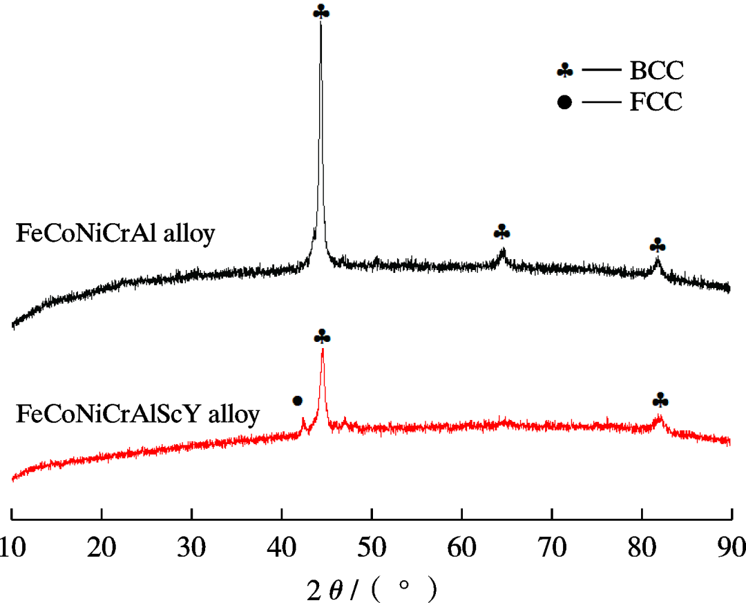 FeCoNiCrAl和FeCoNiCrAlScY 高熵合金的XRD谱