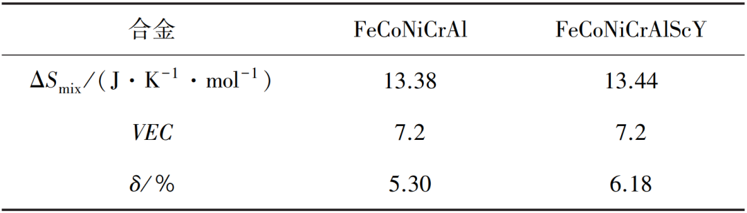 FeCoNiCrAl和FeCoNiCrAlScY 合金的典型热力学参数