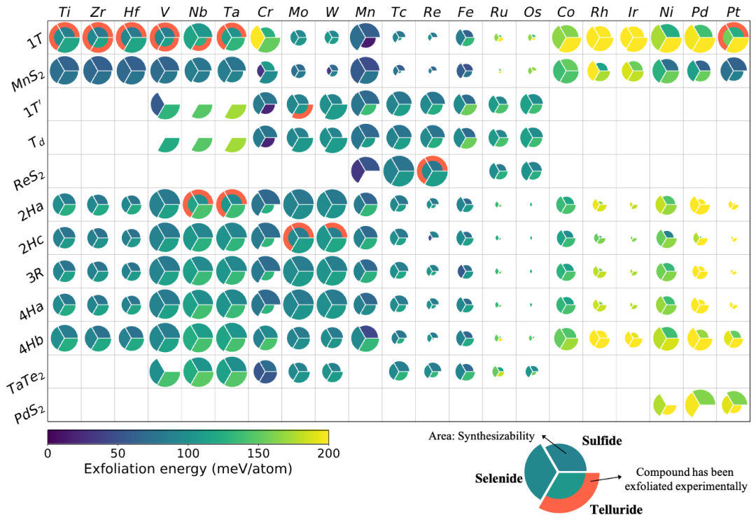 研究背景 过渡金属二硫化物(TMDs)是一类拥有大量结构相的材料,例如1T、2H、3R和1T’相等。在实验上,单层或少层TMDs已成功通过剥离法合成,进一步扩展了TMDs的构型空间。这些多样的构型也给TMD材料带来了丰富的物理化学性质,例如光致发光、谷霍尔效应以及高载流迁移率。利用这些性质,TMDs已经被工业界广泛应用于能量存储、光伏材料、光电探测器以及新型芯片材料等领域。虽然有着极其丰富的构型,但目前关于TMD材料的研究仍主要集中在几个特定化学空间中的几种特定的相,如2H-MoS2、Td-WTe2。对这一类重要材料来讲,目前仍缺乏一类系统全面的研究,尤其是对于其最基础的两类性质:可合成性以及可剥离性。 工作亮点 这项工作利用高通量第一性原理的方法,通过覆盖尽可能多的化学以及构型空间,系统性地评估了TMD材料的可合成性以及可剥离性。这项研究有助于指导实验合成与设计体相、单层TMD材料,预计将对纳米材料领域的研究有重要意义。 图文导读 通过覆盖63个化学空间(21种阳离子与3种阴离子组合)以及16个构型空间(12种层状相和4种非层状相),共得到了1008种TMD体相化合物。图1给出了这些体相TMD材料的热力学稳定性热图。本文借助“Atomly”材料数据库在每个化学空间中构建相图,使用“energy above hull”(Ehull)作为指标来评定材料的热力学稳定性,Ehull数值越小的材料可以认为其结构越稳定,即材料的可合成性越好。图1中以蓝色或红色圆弧标记的化合物,代表其在实验上已经被成功合成出来。可以发现,实验上合成的化合物基本在理论预测上也都具有较高的稳定性,这验证了理论计算的合理性。而对于那些在理论预测上有较高稳定性但还没有被实验合成的材料,它们的性质值得被进一步探索。从图1中可以发现同一族的过渡金属倾向于采纳相似的结构构型,这一点和过渡金属的d轨道电子在八面体晶体场下的排布是息息相关的。 1 体相TMD材料的热力学稳定性热图 为了进一步探索层状TMD材料的可剥离性,需要对单层TMDs的能量信息进行系统的评估。和体相类似,通过覆盖63个化学空间以及6个单层构型空间,本文研究得到了378种单层TMD化合物。图2给出了这些单层TMD材料的相对稳定性热图。同样得,对于那些在实验上已经合成的单层TMDs,可以发现其在理论预测上也均有较高的热力学稳定性,说明了理论计算的准确性。 2 单层TMD材料的热力学稳定性热图 综合以上对体相、单层TMD材料的探索,本文对层状TMD材料的可剥离性做了评估。图3中包含了多种维度的数据,其中颜色的深浅代表相应的层状TMD化合物的剥离能大小,而扇形的面积则代表了对应层状TMD化合物的结构稳定性高低。对于一个层状TMD结构,只有当其同时满足既拥有较高稳定性且剥离能较低的条件时,才能被认为是可以剥离的。基于这一判断标准,本文将图3中的层状TMD化合物划分为了三类:容易剥离(easily exfoliable,EE)、可能剥离(feasibly exfoliable,FE),以及不能剥离(non-exfoliable,NE)。图3中用橙色的圆弧标记出的化合物都是已经被实验证明能够剥离为单层的材料,而它们在理论预测上也都属于EE一类,显示出了理论预测的准确性。图3给出了一大类可以剥离为单层的TMD材料,鉴于二维材料在目前理论研究与工业应用上的重要地位,这些潜在的二维材料的性质与应用场景值得被进一步研究与探索。 3 层状TMD材料的剥离能热图 过渡金属二硫化物(TMDs)是一类拥有丰富结构构型和新颖物理性质的材料。以往对这一类材料的研究主要集中在单层或少层结构的可合成性上,但是目前对于TMD材料的丰富的构型空间仍缺乏一种较完整的探索。 本文使用高通量第一性原理计算的方法探索了庞大的化学空间与结构构型空间,系统性地评估了TMD材料的可合成性与可剥离性, 提供了一种定量的探索材料合成与体系结构之间关系的理解方法。本文提供的“鸟瞰”图对于指导设计多种维度的新型TMD材料具有重要意义。在此基础上,未来科研人员对于TMDs更高阶性质的探索,如电子结构、输运性质、拓扑性质等,将更加有的放矢,事半功倍。 总结与未来展望 本文研究工作得到国家重点研发计划基金(2021YFA0718700)和中国科学院基金(ZDBS-LY- SLH007、XDB33020000、CAS-WX2021PY-0102)的经费支持,以及松山湖实验室计算材料平台的计算资源支持。 作者简介 芦腾龙 第一作者 中国科学院物理研究所,在读博士研究生。2018年本科毕业于北京师范大学物理系,2018年至今就读于中国科学院物理研究所,攻读博士学位。atomly.net材料数据库核心开发人员。主要研究领域:二维材料、电池阴极材料、固态电解质等。 孟 胜 通讯作者 中国科学院物理研究所研究员、国家表面物理重点实验室主任、博士生导师 。主要研究方向:(1)表面量子相互作用; (2) 激发态量子动力学;(3) 能量转化和存储微观机制、太阳能电池、原子尺度水特性等。主持开发了基于函数密度泛函理论的TDAP软件包,深受行业好评。在Phys. Rev. Lett. 、Nature、Science、Nano Letters、J. Am. Chem. Soc.等行业头部期刊发表论文 200余篇。论文共被引用 14,000 余次, H因子60。入选Scopus 2014-2020 年中国高被引作者。获得基金委优秀青年基金、杰出青年科学基金支持。 刘 淼 通讯作者 中国科学院物理研究所特聘研究员,博士生导师。研究方向包括:材料表界面微观机理、能源材料、数据驱动的新材料发现、人工智能等