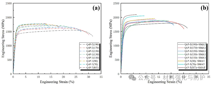 表 Q-P-T钢和Q-P-T + SMAT钢在不同Tq下的力学性能