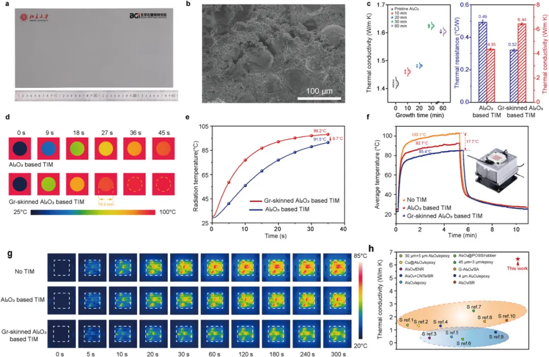 • 性能对比 (图4h): 该 TIM 在同类 Al₂O₃ 基材料中导热性能领先