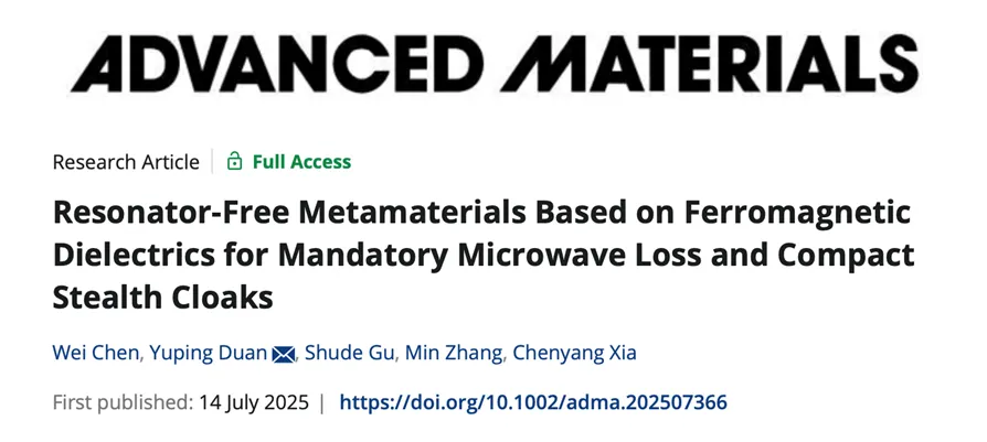 近期,大连理工大学材料科学与工程学院段玉平教授团队在新型微波隐身超材料研究方面取得重要进展。该研究针对传统谐振型超材料面临的单元面内尺寸与电磁响应强耦合、难以小型化的瓶颈问题,提出了一种基于铁磁介质的无谐振单元超材料设计范式。过“成分-结构二维调制策略”将反射波的振幅与相位进行解耦,实现了相位调控与单元面内尺寸的完全独立,为开发高性能、小型化电磁隐身器件提供了全新的技术路径。 研究成果以“基于铁磁介质的无谐振超材料实现强制微波损耗与紧凑型隐身斗篷” (Resonator-Free Metamaterials Based on Ferromagnetic Dielectrics for Mandatory Microwave Loss and Compact Stealth Cloaks)为题,发表在材料科学领域顶级期刊《先进材料》(Advanced Materials)上。高熵合金吸收剂最新成果(Strategy-induced strong exchange interaction for enhancing high-temperature magnetic loss in high-entropy alloy powders)发表在材料领域国际高水平期刊《先进功能材料》(Advanced Functional Materials)。 「READING」