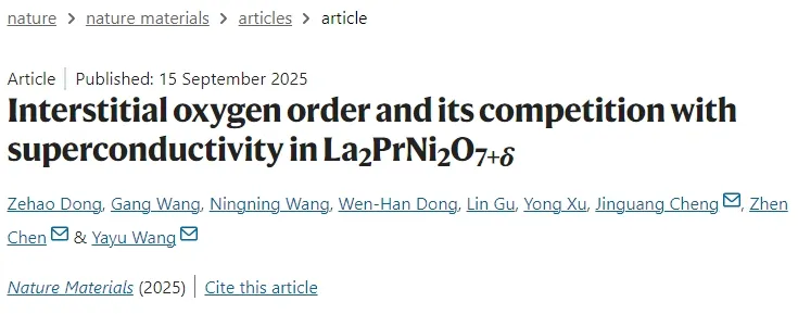 高压条件下La3Ni2O7中的高温超导性引起了学术界的广泛关注,但该超导相却相当脆弱。尽管通过用Pr替代La可以实现块体超导性,但其潜在机制尚不清楚。另一个难题是氧含量的作用:适度的氧化可增强超导性,而高压氧退火则会抑制超导性。清华大学王亚愚、中科院物理所陈震、程金光等人通过高分辨率显微技术+能谱分析+理论计算,首次可视化并定量分析了Pr掺杂和氧退火对La2PrNi2O7+δ超导性能的影响机制,发现了间隙氧有序相及其对超导的抑制作用,为理解镍酸盐超导机制和材料设计提供了关键实验与理论依据。研究成果以Interstitial oxygen order and its competition with superconductivity in La2PrNi2O7+δ为题发表于Nature Materials,并早在8月5日上传了预印本平台arxiv。