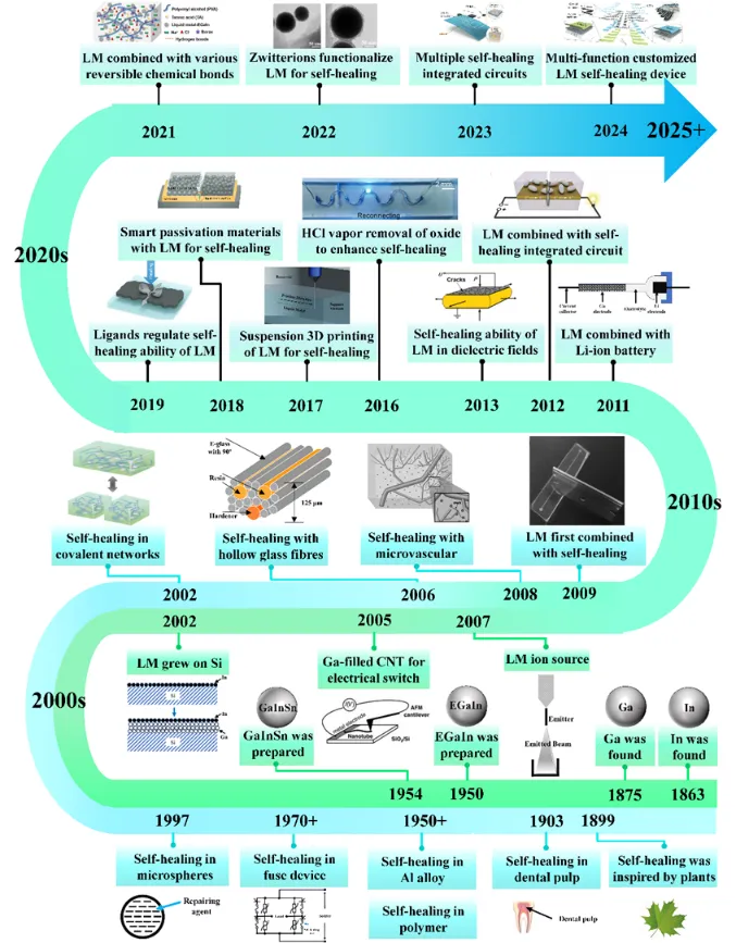 图2 液态金属与自修复材料发展历程