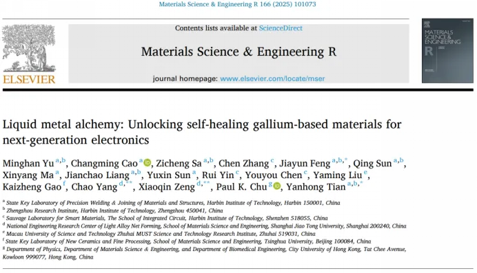 近日,哈尔滨工业大学材料科学与工程学院田艳红教授团队携手上海交通大学曾小勤教授团队和香港城市大学朱剑豪教授,对液态金属在自愈合材料领域的最新研究进展及其在未来电子器件中的应用前景进行了系统性总结。相关综述以“Liquid metal alchemy: Unlocking self-healing gallium-based materials for next-generation electronics”为题,发表在材料科学领域顶级期刊《Materials Science & Engineering R》上。