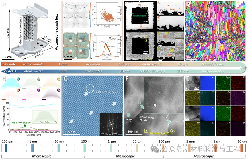 图2 增材制造铝基超材料多尺度表征。