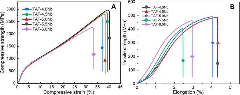 TAF-xNb合金的室温压缩及高温拉伸力学性能