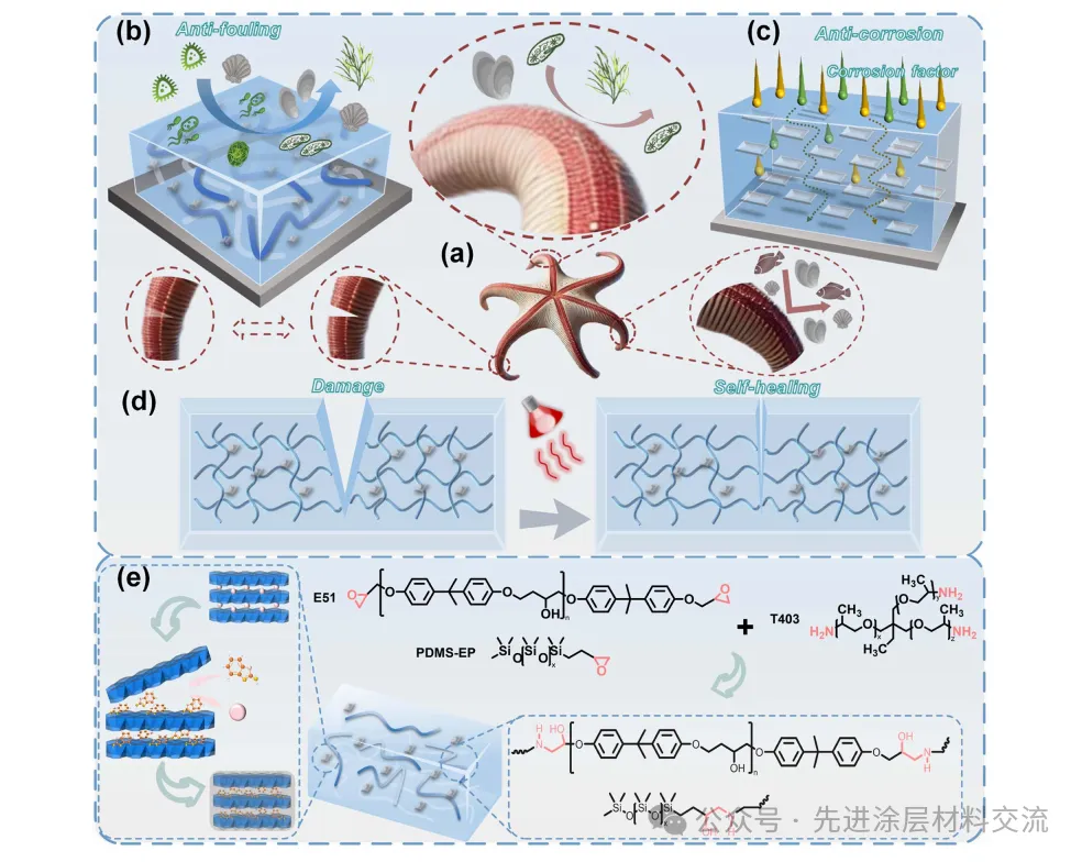 该研究成功制备了自修复-防污-防腐一体化涂层,为环氧树脂的功能改性提供了新颖设计思路,具有重要的实际应用价值。
