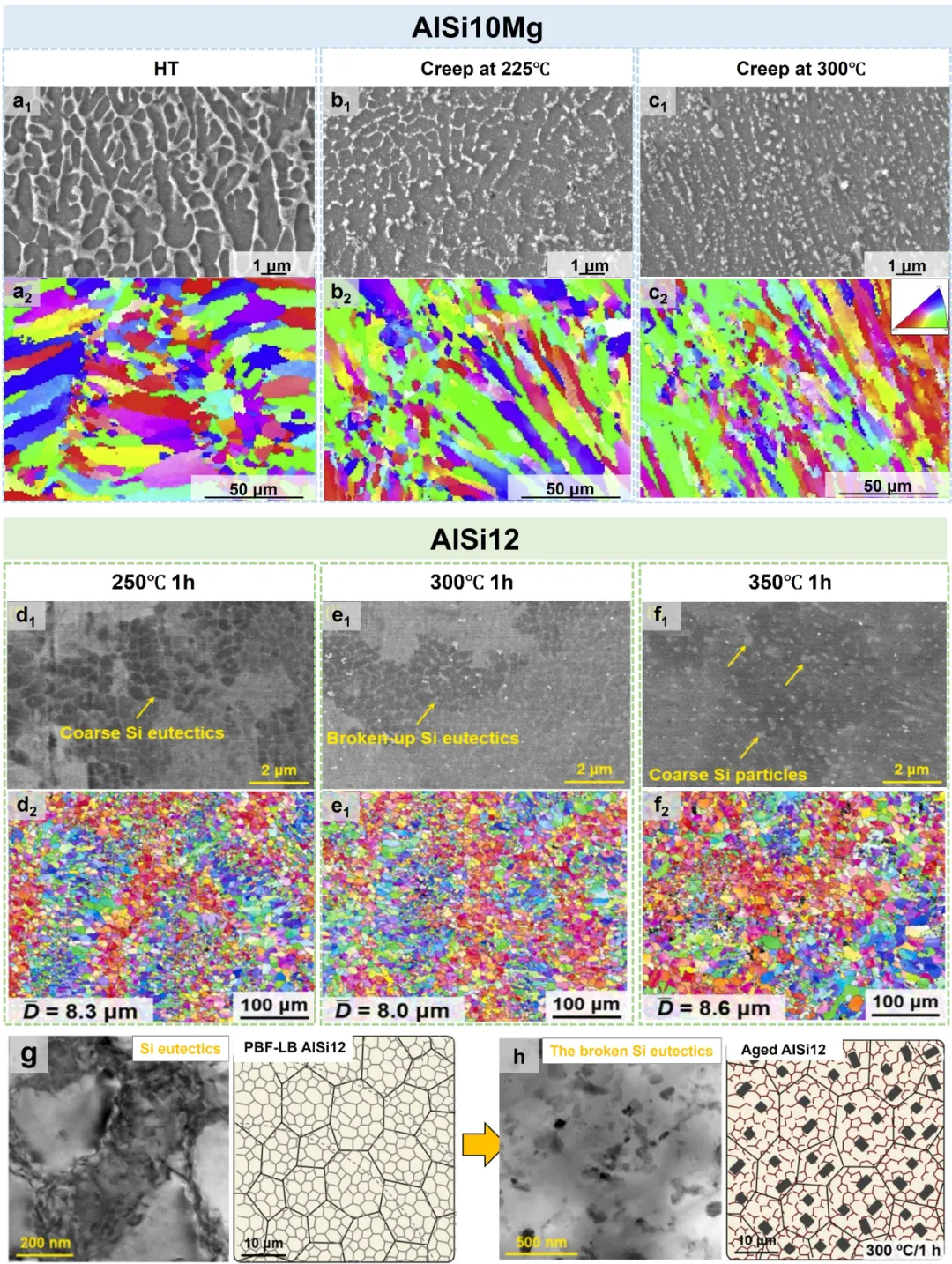 Al-Si系:AlSi10Mg、AlSi12是目前AM最常用的铝合金,但高温性能有限。通过添加Fe、Ni形成Al₁₃Fe₄、Al₉FeNi等金属间化合物,可将400℃强度从14 MPa提升至98 MPa;