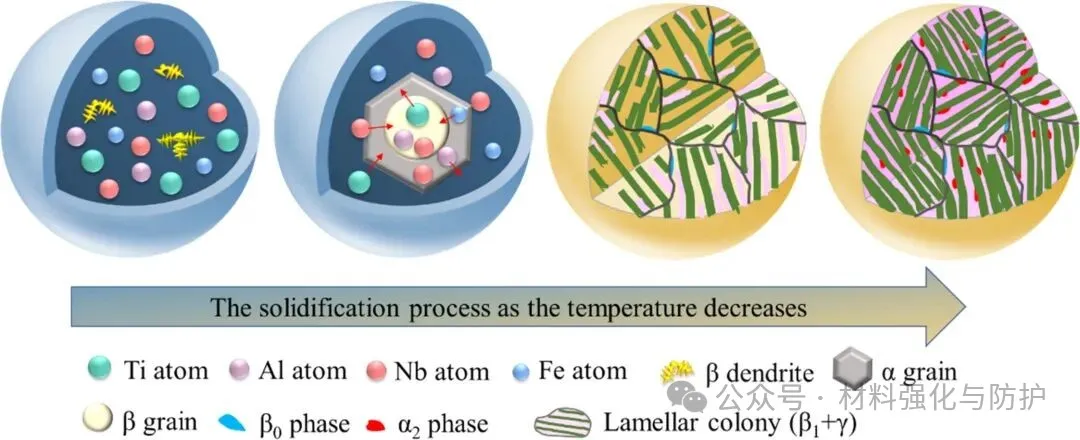 γ-TiAl合金是一种低密度、高强度的金属间化合物,特别适合航空航天发动机的耐热部件制造,其密度只有4.0g/cm³,但比强度很高,在600-900℃高温下仍能保持优异的抗氧化和抗蠕变性能。γ组织(NG)、双态组织(DP)与全层片组织(FL)是传统γ-TiAl合金中常见的组织类型,其中,全层片组织因也是该合金高温强度和蠕变抗力的主要来源之一,但通常仅由α2+γ层片构成,且对成分与热处理极为敏感。近年来,β稳定元素(如Nb、Mo、Fe)被引入γ-TiAl合金体系,用以改善热加工性能与组织可控性,然而,β相的引入往往伴随着室温塑性下降或组织不稳定问题。