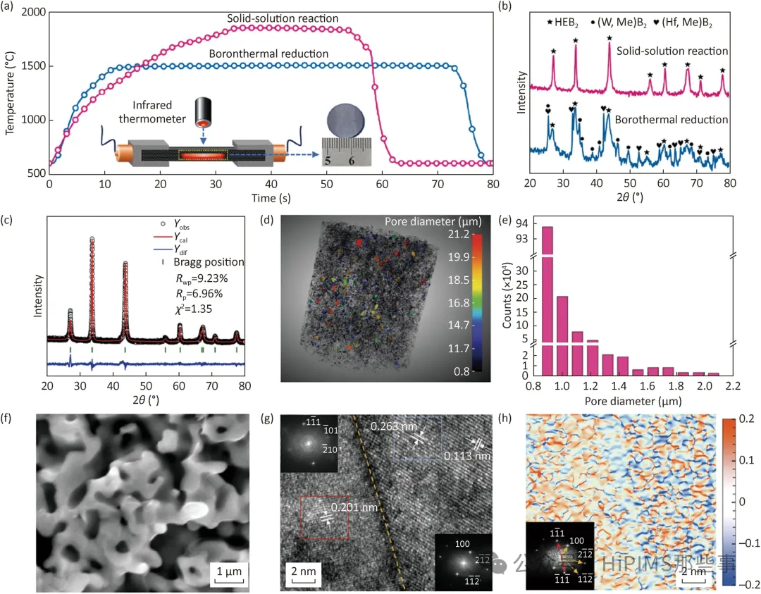图3. 9阳离子多孔高熵二硼化物陶瓷样品的制备与表征。