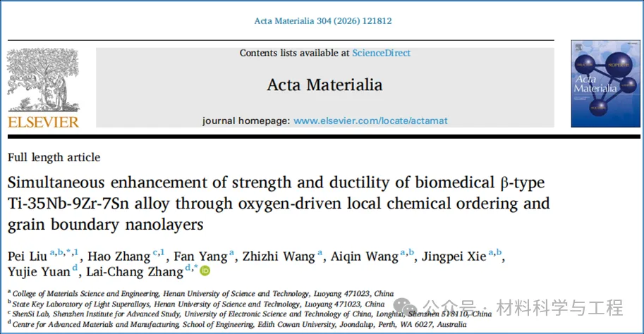 河南科大&电子科大&伊迪斯科文大学《Acta Materialia》:实现β钛合金强塑性同步提升!
