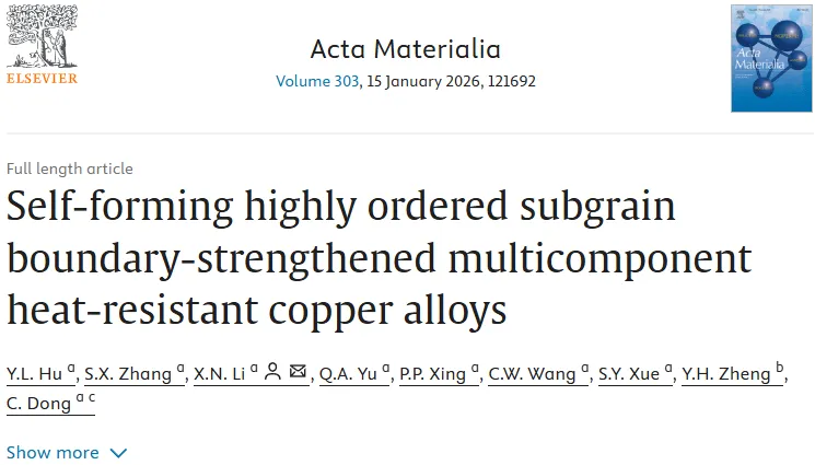 高温下不“软”的铜:多元协同设计实现亚微米尺度有序亚晶界强化铜合金