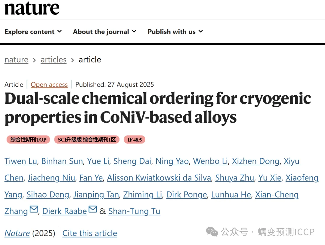 华东理工大学Nature正刊 低温强韧性协同提升