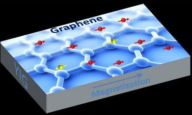 Shi和他的团队在实验中发现,当把石墨烯暴露在外部磁场中时,石墨烯的霍尔电压(一种垂直于电流方向的电压)与钇铁石榴石的磁化线性相关(这种现象称为反常霍尔效应,出现在如铁和钴磁性材料中)。他们由此确定了这时的石墨烯具有磁性。