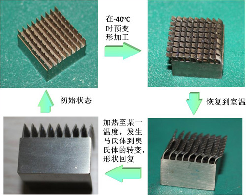 除了上述多孔表面,利用形状记忆合金,还可以加工各种各样的可变形微细结构,原则上可用于换热器、电子器件热沉、热管、毛细泵环、多孔介质及其他一些传热器件,既可提高换热效果,也可根据某些需要进行传热控制,具有广阔的应用前景。