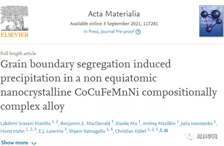 标签: 高熵合金, 纳米, 晶界, Acta Materialia