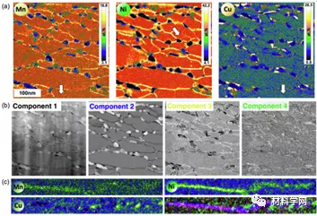 图四。3D-APT表征纳米晶CoCuFeMnNi合金中Fe、Co、Ni、Cu和Mn元的分布