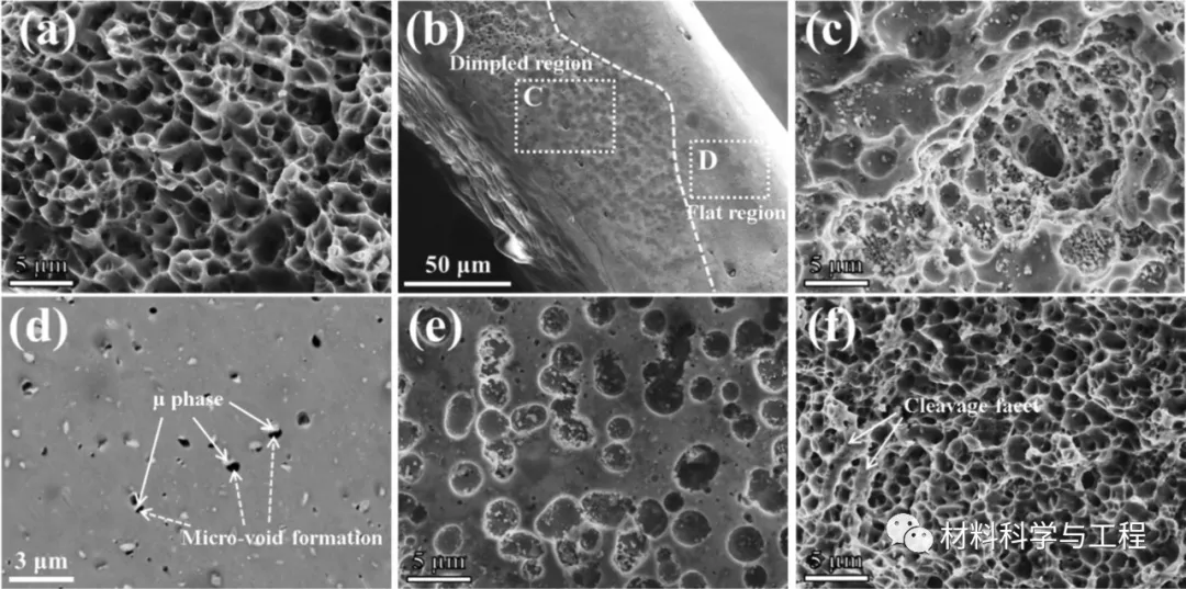 在此,研究者报道了双相MEA Co17.5Cr12.5Fe55Ni10Mo5(原子百分比,at %, Mo5),从室温至0.5 K的宽温度范围下的力学性能和变形诱导的组织演变。这是关于两相HEA/MEA,首次报道了在这个创纪录的低温下的力学响应,它补充了在0.5 K下单相HEA和MEA的稀缺数据。在研究的整个温度范围内,该合金表现出优异的强度和塑性,并具有较高的应变硬化速率。其屈服强度、抗拉强度、应变硬化能力和吸收的机械能等性能,均优于大多数低温合金和HEAs。在考虑的极低温度区间(0.5-4.2 K)内,该合金表现出几个不同寻常的特征,包括屈服强度和拉伸延性的温度依赖异常,不连续塑性变形(DPF),以及变形诱发马氏体转变倾向的变化等。