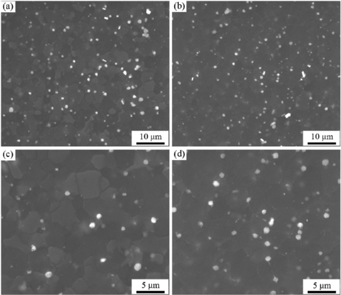 图3(a,c)ECAP GQ62和(b,d)ECAP&A GQ62在(a,b)低倍率和(c,d)高倍率下的SEM图像。