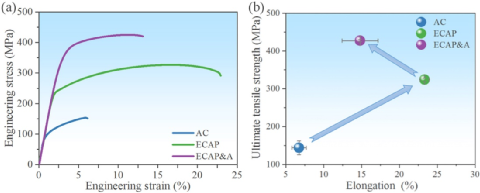 (2)ECAP GQ62的强度和延展性是AC GQ62的两倍以上。虽然延展性略有牺牲,但ECAP&A GQ62由于Orowan强化效应的分层析出物,进一步提高了强度。