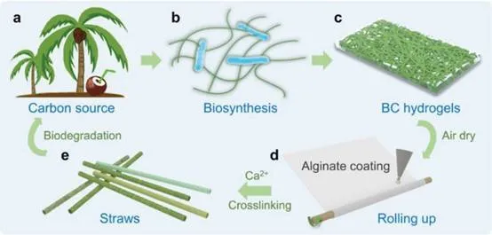俞书宏课题组报道了一种由细菌纤维素 (BC) 通过生物合成制成的新型可食用无微塑料吸管。通过藻酸盐涂层,这种基于BC的吸管实现了比纸吸管更好的机械性能,并且避免了额外的粘合剂。由于3D纳米纤维网络和强大的层间连接,这种基于BC的秸秆的综合性能超过了市售同类产品,满足了实际使用的要求。特别值得注意的是,可食用特性为吸管提供了更好的用户体验和新的报废选择,使基于BC的吸管成为塑料吸管的更健康、更环保的替代品。相关研究以“Edible, Ultrastrong, and Microplastic-Free Bacterial Cellulose-Based Straws by Biosynthesis”为题目,发表在AFM上。