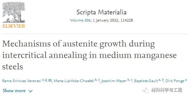德国马克斯-普朗克研究所的研究人员探讨了成分为Fe-10Mn-0.05C-1.5Al(wt.%)中锰钢中奥氏体的生长机制,明确了Mn在钢中的扩散作用与扩散机制。相关论文以题为“Mechanisms of austenite growth during intercritical annealing inmedium manganese steels”发表在Scripta Materialia。