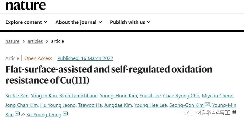 日前,韩国国立釜山大学等单位的研究人员报道了半永久性抗氧化铜薄膜的制备,因为它们由平坦的表面组成,只有偶尔的单原子台阶。第一性原理计算证实,单原子台阶边缘与平面一样不透氧,一旦氧面心立方 (fcc) 表面位点覆盖率达到 50%,O原子的表面吸附就会受到抑制。这些综合效应解释了超平坦铜表面的卓越抗氧化性。相关论文以题为发表在国际顶刊《Nature》。