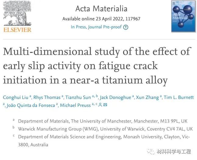 曼彻斯特大学《Acta Materialia》新机制!实现钛合金高周疲劳裂纹萌生量化预测