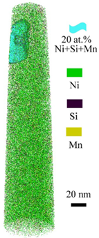 图14.用等浓度面突出显示析出相,该表面包含含有超过20at. %的Ni,Mn和Si组合的区域