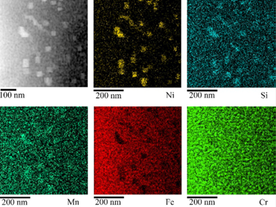 图13.α和α’相中的Fe,Si,Cr,Mn,Ni和Mo元素分布