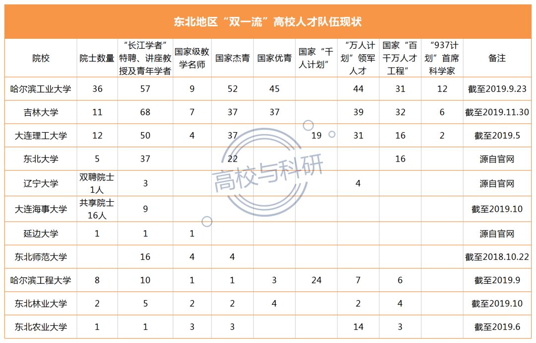 今天,小编将从2019年度国家杰青、优青、院士增选、国家科技奖获奖情况以及人才队伍等方面,与大家一同回顾东北高校一年来的人才建设情况。