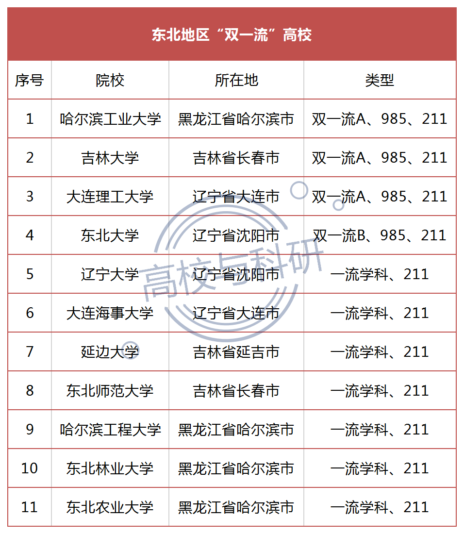 东北地区一流大学建设高校4所,一流学科建设高校7所,共11所“双一流”,占比7.9%。总得来说,东北高校的数量并不占优势,虽与华中、西北相差无几,但与华东、华北地区还是无法相比。不过还是有部分“双非”院校也是很出色的,比如哈尔滨医科大学、吉林农业大学等。