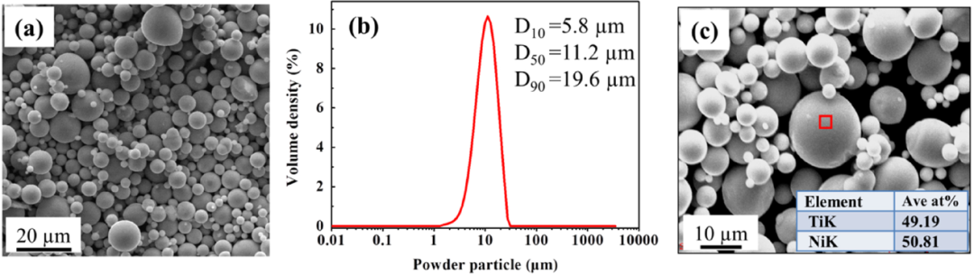 图2. μ-LPBF采用的小粒径NiTi粉末表征。